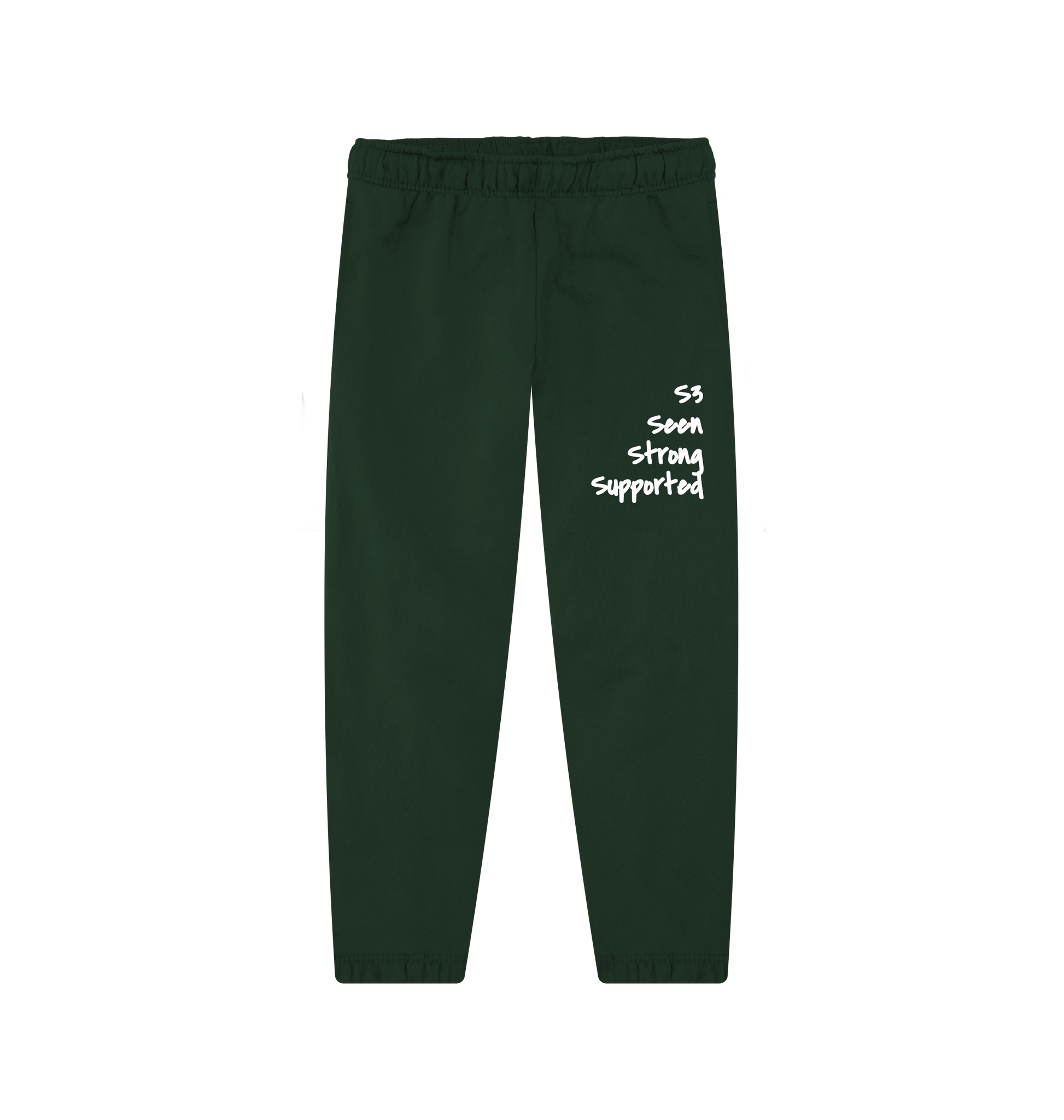 Experience comfort and conscious style with the Unisex Organic Cotton Joggers - S3 Seen • Strong • Supported in Evergreen. Made for those who value sustainability, durability, and mindful living, these joggers combine soft, premium fleece with an empowering message to remind you to be Seen, Strong, and Supported.